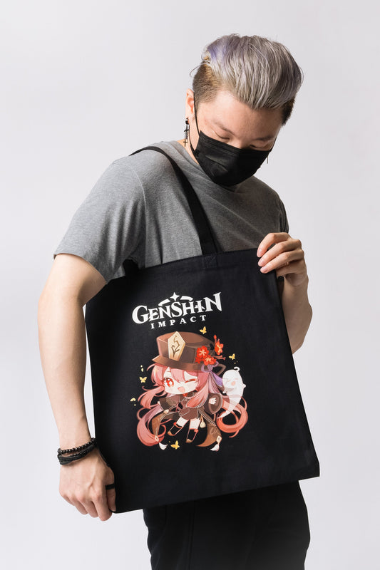 Hu Tao Genshin Impact Canvas Black Tote Bag - Double Sided Print