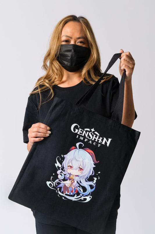 Ganyu Genshin Impact Canvas Black Tote Bag - Double Sided Print